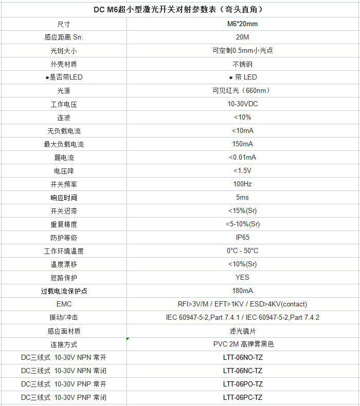 M6直角彎頭微型激光開關(guān)對(duì)射式
